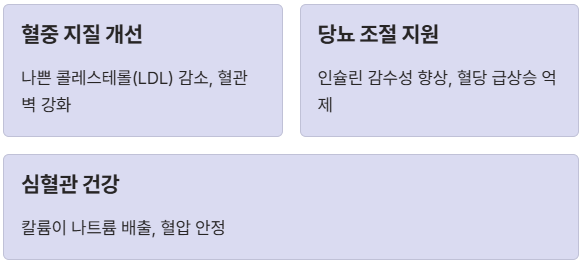 - ✅ 혈중 지질 수치 개선: 풍부한 오메가-3가 나쁜 콜레스테롤(LDL)을 낮추고 혈관 벽을 튼튼하게 하여 동맥경화와 고혈압 예방에 기여합니다.