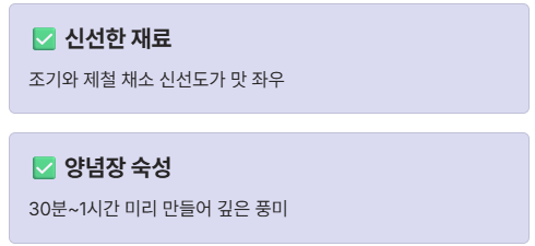 - ✅ 황금 양념장은 미리 숙성! 30분~1시간 숙성으로 깊은 풍미를 끌어올리세요.