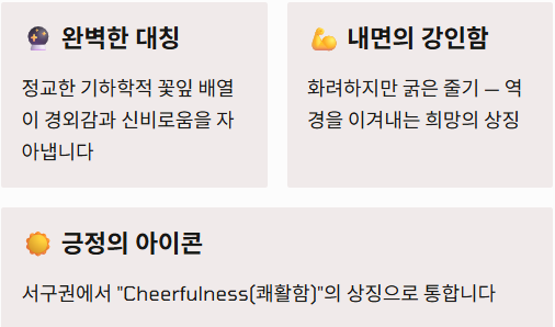 - 내면의 강인함: 겉으로는 화려하고 연약해 보이지만, 줄기가 굵고 생명력이 강해 '역경을 이겨내는 희망'이라는 상징성을 갖게 되었습니다.