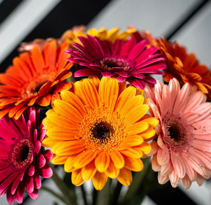 거베라는 육종 기술의 발달로 수백 가지의 색상이 존재합니다. 색상에 따라 전달되는 감정의 농도가 다르므로 상황에 맞는 선택이 중요합니다.