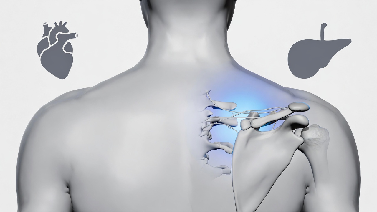 - 내부 장기 연관통: 심장, 폐, 간, 담낭의 이상이 신경 전달 경로를 공유하여 견갑골 통증으로 느껴집니다.