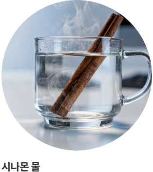 | 시나몬물 | 따뜻한 물에 계피 스틱을 우려내기 | 수분 보충 및 혈당 안정 |