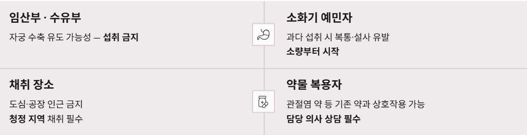 아무리 좋은 약초라도 체질과 상황에 맞지 않으면 독이 될 수 있습니다. 광대나물 섭취 전 반드시 다음 사항을 체크하세요.