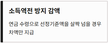 - 소득역전 방지 감액: 연금을 받아 소득인정액이 선정기준액을 살짝 넘기게 되는 경우, 그 차액만큼만 지급하여 역전 현상을 방지합니다.