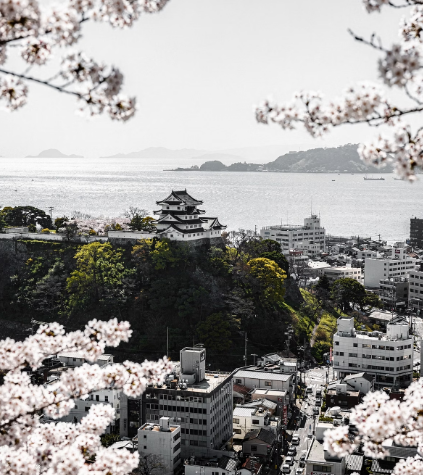 마쓰야마의 4월은 벚꽃으로 시작해 벚꽃으로 끝난다고 해도 과언이 아닙니다. 마쓰야마 성(Matsuyama Castle) 정상에서 내려다보는 분홍빛 물결은 평생 잊지 못할 장관을 선사하죠. Wanderlog의 분석에 따르면, 마쓰야마 성은 고도가 다소 높아 시내보다 벚꽃이 1~2일 늦게 만개하는 특징이 있습니다.
