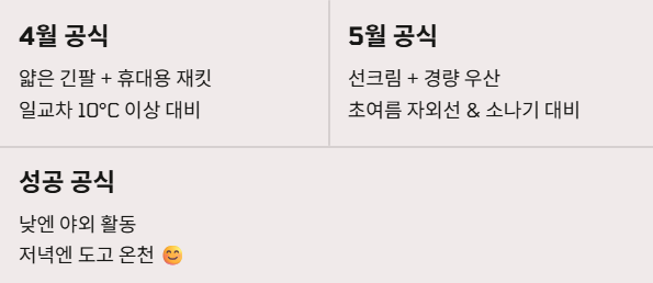 4. 일교차 큰 봄철, 짐 싸기 꿀팁은? 🎒