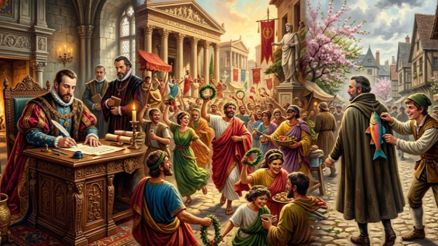 이러한 인류학적 관점은 만우절이 특정 국가의 사건이 아닌, 겨울이 가고 봄이 오는 길목에서 인간의 억눌린 본능을 해소하는 '카니발적 전통'에서 기인했음을 시사합니다. 역사학자들은 이러한 원시적 축제가 기독교 문화권과 결합하며 만우절의 형태로 변형되었을 가능성에 주목합니다.