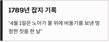 다소 종교적이고 전설적인 이야기지만, 영국과 일부 유럽 지역에서는 만우절의 기원을 노아의 방주(Noah's Ark) 사건에서 찾기도 합니다.