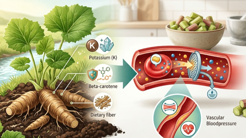 머위뿌리는 혈액 내 노폐물을 청소하고 혈압을 안정시키는 '혈관 청소부' 역할을 수행합니다. 이는 칼륨과 미네랄, 그리고 항산화 성분의 조화 덕분입니다.