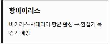 - 항바이러스 기전: 기관지염을 유발하는 각종 바이러스와 박테리아에 대한 항균 활성이 뛰어나 환절기 목 감기 예방에 매우 효과적입니다.