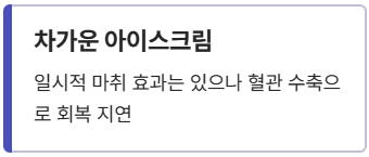 1. 차가운 아이스크림: 일시적 마취 효과는 있으나, 혈관을 수축시켜 회복을 늦춥니다.