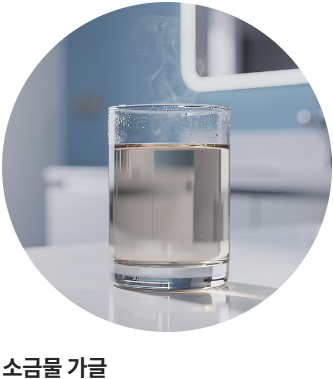 - 미지근한 소금물 가글: 목 점막의 부종을 가라앉히고 세균을 억제합니다. (농도는 0.9% 생리식염수 정도가 적당합니다.)