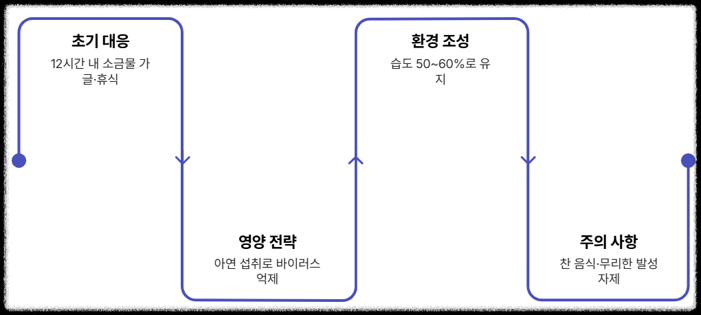 수만 명의 커뮤니티 데이터 분석 결과, 초기 증상이 나타난 직후 12시간 이내에 실시한 '소금물 가글'과 '충분한 수분 섭취'가 회복 기간을 최대 2일 단축시킨 것으로 나타났습니다.