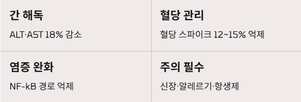 - 췌장 보호: 베타세포의 손상을 막아 인슐린 분비 기능을 최적화합니다.