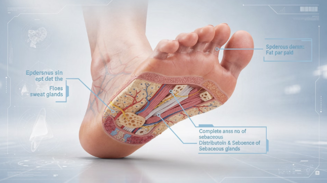 발뒤꿈치 각질은 왜 유독 심하게 생길까요? 가장 큰 원인은 피지선의 부재입니다. 발바닥은 다른 신체 부위와 달리 유분을 공급하는 피지선이 없어 쉽게 건조해집니다. 여기에 체중의 압박과 신발과의 마찰이 더해지면서 피부를 보호하기 위해 각질층이 점점 두꺼워지는 것이죠.