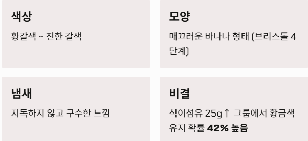 2. 모양: 매끄러운 바나나 형태 (브리스톨 대변 척도 4단계)