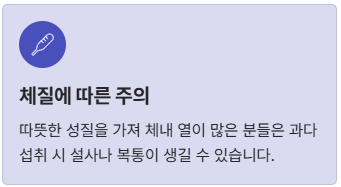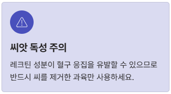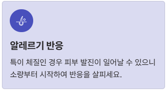 - 알레르기: 특이 체질인 경우 피부 발진이 일어날 수 있으니 소량부터 시작하세요.
