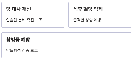 | 당 대사 개선 | 인슐린 분비 촉진 보조 | 식후 혈당 상승 억제 |
