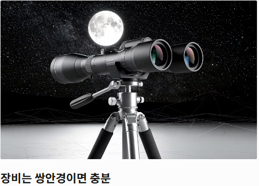 - 장비 추천: 고가의 망원경이 없어도 7x50 또는 10x50 쌍안경만 있으면 달의 바다와 주요 크레이터를 충분히 감상할 수 있습니다.
