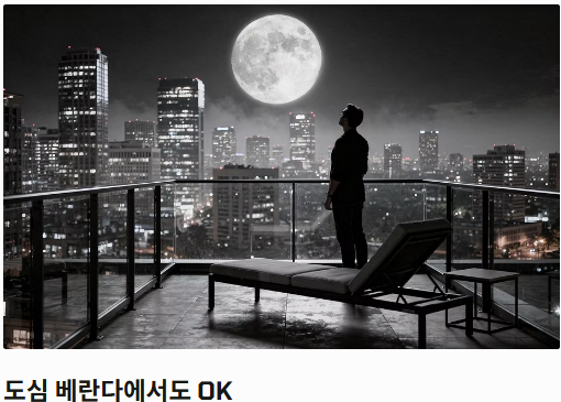 - 관측 장소: 가로등이 없는 탁 트인 곳이 좋지만, 달은 워낙 밝아서 도심 아파트 베란다에서도 충분히 즐길 수 있는 '도시형 취미'입니다.