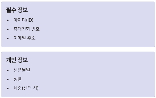 - 아이디(ID), 휴대전화 번호(필수 항목)