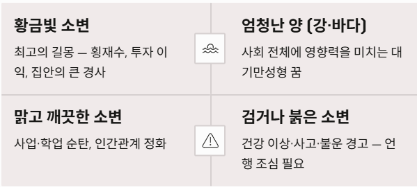 | 꿈의 상황 | 해몽 경향 | 키워드 |
