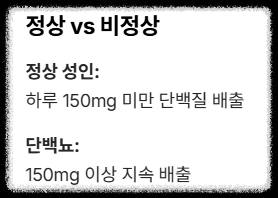 정상적인 성인의 경우 하루에 150mg 미만의 단백질이 배출되지만, 그 이상이 지속적으로 배출된다면 신장 기능 저하를 의심해야 합니다.