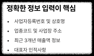 필요서류: 국세청 연동 자료 및 사업자 기본정보