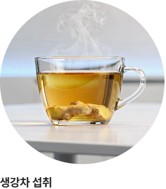 - 생강차 섭취: 생강의 '진저롤' 성분은 천연 소화제 역할을 하여 위장 운동을 돕고 구토 유발 신호를 차단하는 데 도움을 줍니다.