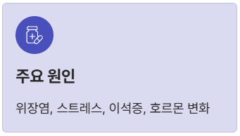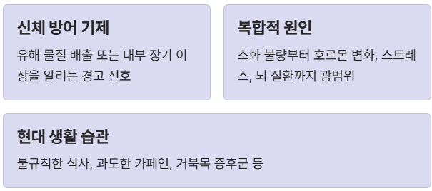 - 다양한 원인의 복합 작용: 단순한 소화 불량부터 호르몬 변화, 심리적 스트레스, 심지어는 뇌 질환까지 그 원인이 매우 광범위하기 때문에 증상의 양상을 잘 살펴야 합니다.
