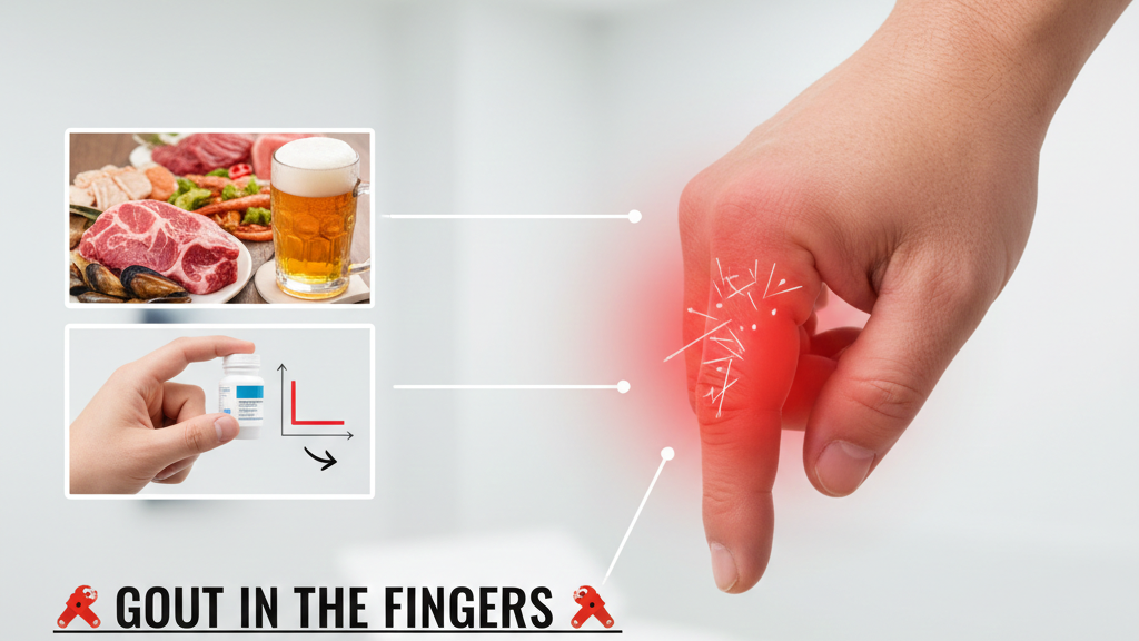 - 📍 급성 발작: 갑자기 손가락 마디가 붉게 부어오르고 스치기만 해도 아픈 통증이 발생합니다.