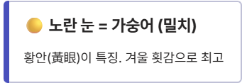 | 눈의 특징 | 검은색 (검은 눈동자) | 노란색 (황안) |
