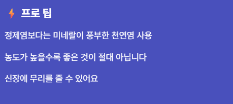 모두에게 보약일 수는 없습니다. 특히 혈압 조절이 필요하신 분들에게 소금은 민감한 요소죠. 본인의 체질을 먼저 파악하는 것이 우선입니다.