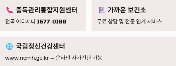 - 2. 국립정신건강센터 (http://www.ncmh.go.kr) - 중독 질환 가이드