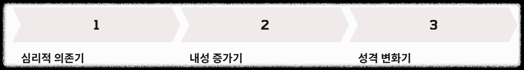 | 성격 변화기 | 술을 마시지 않을 때 예민하고 짜증이 많아짐. 음주 사실을 숨기기 시작함. |