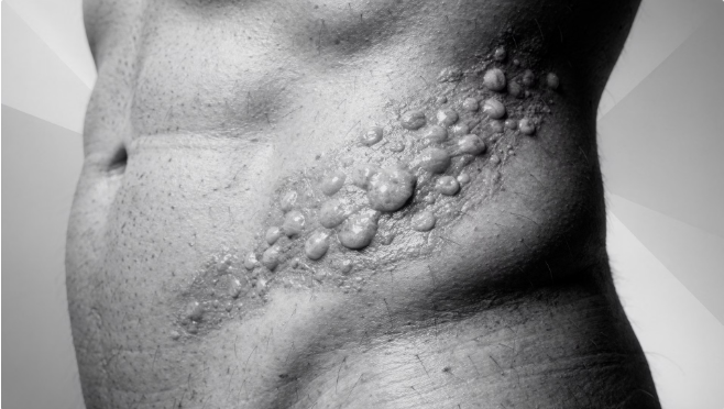 - 대상포진: 통증이 먼저 나타나고 며칠 뒤 띠 모양의 붉은 수포(물집)가 올라옵니다. 스치기만 해도 아픈 것이 특징이에요.