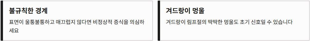 | 멍울의 질감 | 부드럽거나 탄력이 느껴짐 | 돌처럼 딱딱하고 거친 질감 |