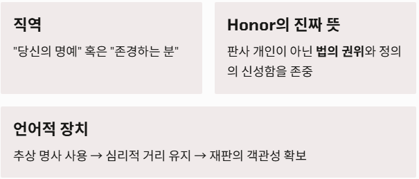 여기서 'Honor'는 판사 개인의 인격보다는 그가 대표하는 법의 권위와 정의의 신성함을 존중한다는 의미를 내포하고 있습니다.