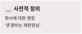 - 어원적 배경: 중세 영어 'honour'에서 유래했으며, 당시 고위 관직자나 귀족을 부르던 예법이 사법 체계로 이식된 것입니다.