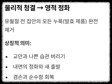 - 청결과 정화: 현대 유대인 가정에서는 유월절 전 대청소를 통해 묵은 누룩을 제거하듯, 내면의 교만과 나쁜 습관을 버리는 정신적 정화의 계기로 삼습니다.