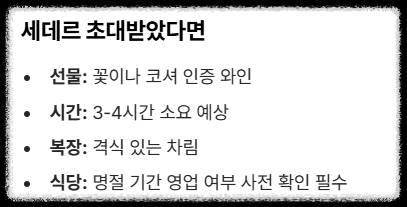 - 참여자 팁: 만약 유대인 가정에 초대받는다면 작은 꽃이나 와인(코셔 인증)을 선물로 준비하는 것이 예의이며, 식사 시간이 길다는 것을 미리 염두에 두어야 합니다.