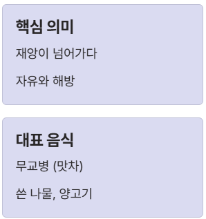 - 쓴 나물(Maror): 보통 서양 고추냉이나 쓴 맛이 나는 채소를 사용합니다. 이는 이집트 노예 생활 당시 겪었던 조상들의 쓰라린 고통과 슬픔을 잊지 않기 위함입니다.