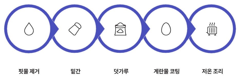 - 핏물 제거의 마법: 고기를 조리하기 20분 전, 키친타월 사이에 고기를 겹겹이 쌓아 핏물을 확실히 제거하세요. 핏물은 잡내의 원인이자 계란옷이 벗겨지는 주범입니다.