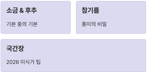 - 완벽한 밑간: 소금과 후추만으로도 충분하지만, 2026년 미식가들의 팁은 바로 '참기름과 국간장'입니다. 아주 살짝만 겉면에 발라주면 풍미가 폭발합니다.