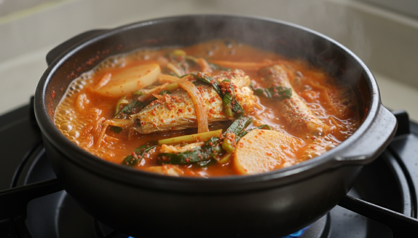 - 마무리: 마지막으로 미나리나 쑥갓을 듬뿍 올리고 한소끔 더 끓여주면, 2026년 조기매운탕 황금레시피가 완성됩니다!