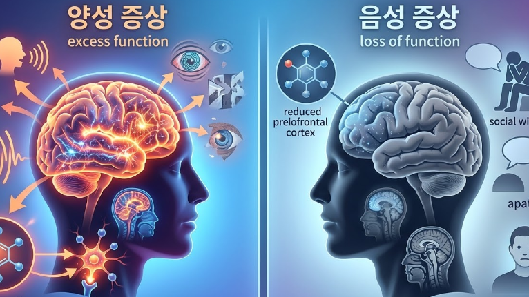 최신 연구에 따르면, 양성 증상은 도파민 과잉과 관련이 깊고, 음성 증상은 뇌의 전두엽 기능 저하와 관련이 있다는 데이터가 축적되고 있습니다.