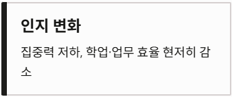 | 인지 변화 | 집중력이 떨어지고 학업이나 업무 효율이 현저히 저하됨 |
