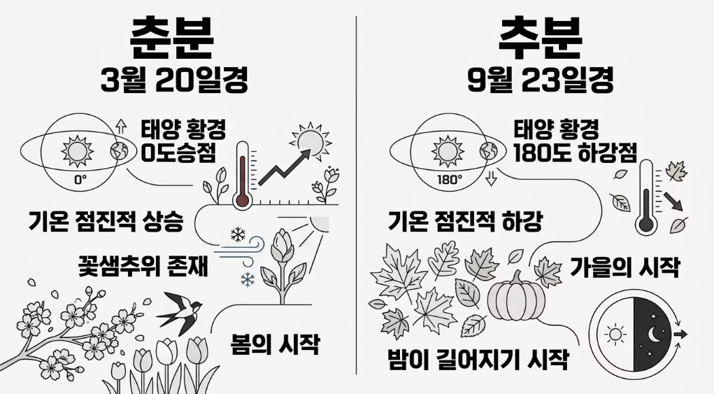 | 구분 | 춘분 (Spring) | 추분 (Autumn) |