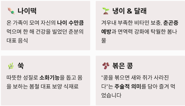 3. 조상들이 춘분에 꼭 먹었던 음식은? 🌿
