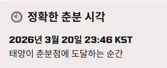 ✅ 춘분 시각: 2026년 3월 20일 23:46 KST (낮과 밤의 균형)